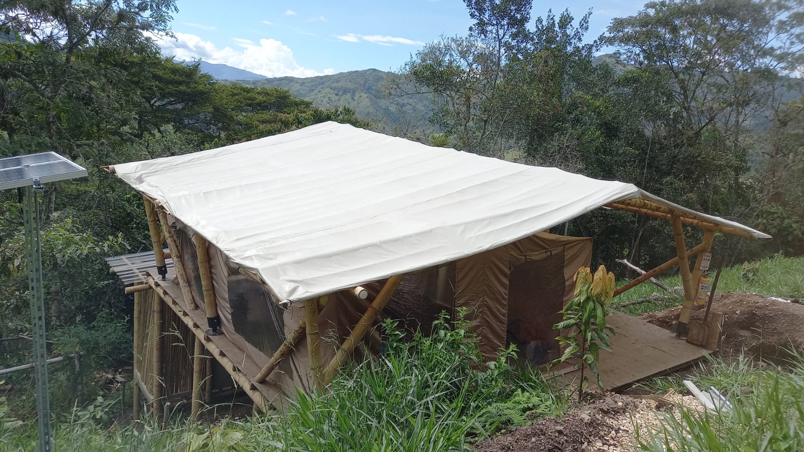 Cuatro hermosas cabañas con estructura en guadua dispuestas para brindarte una experiencia de descanso placentera y rodeada de cacaos y árboles frutales: El Carpintero, La Golondrina, EL Azulejo y el Turpial