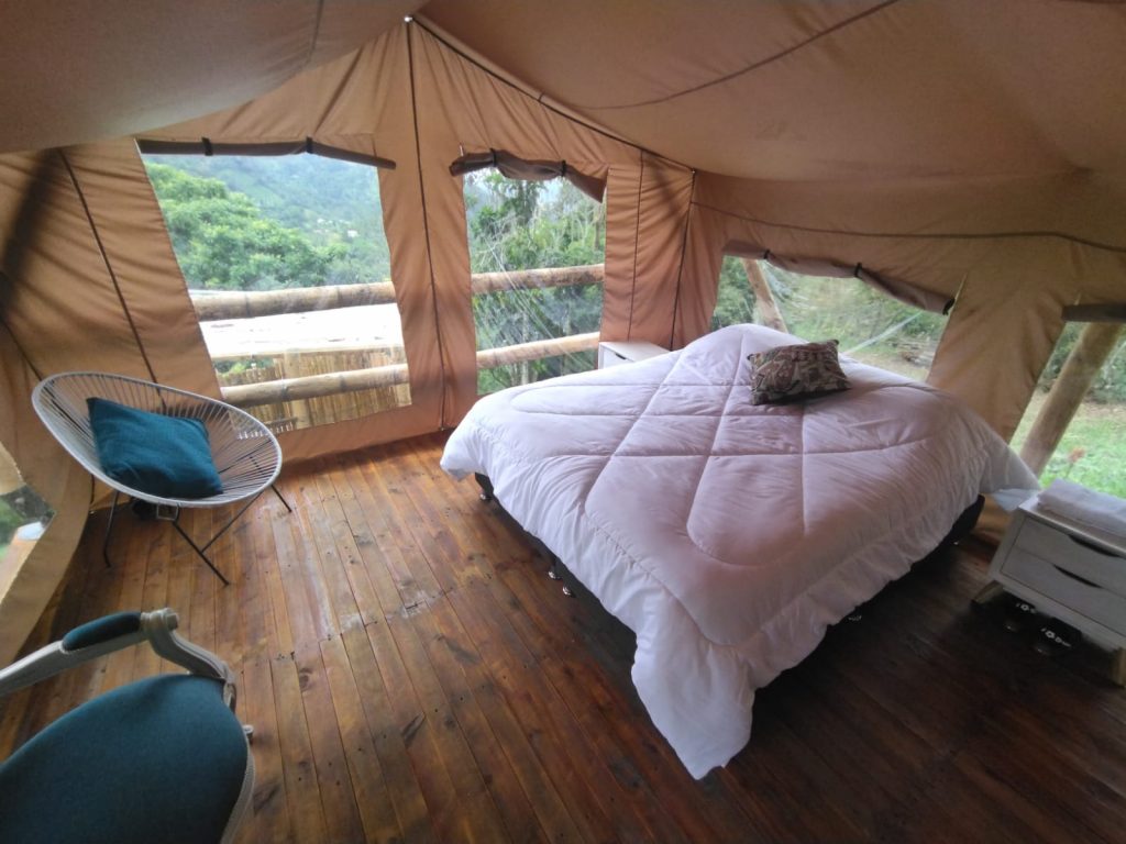 Glamping con espacio de 16 m2 donde podrás encontrar la alegría de un amanecer y el asombro de un atardecer pintado por muchas tonalidades en rojos y amarillos. Todo esto dentro de los protocolos de bioseguridad implementados para tu bienestar.